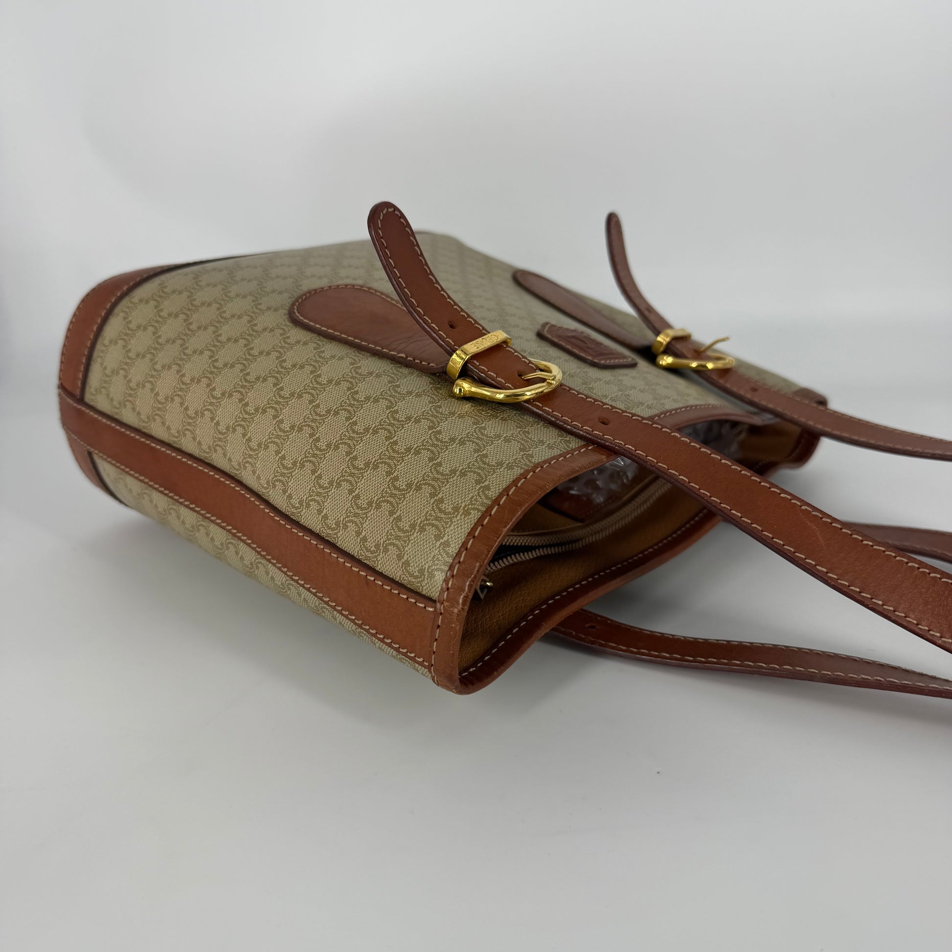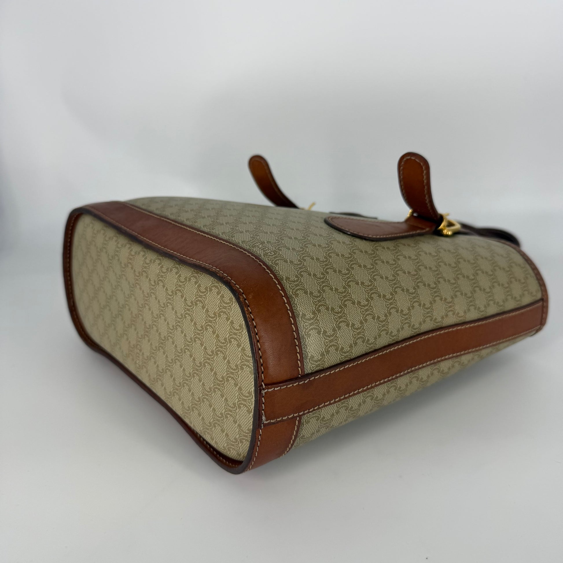 Exterior: Classic Céline Macadam coated canvas beautifully preserved. No holes, no stains, no odors. Corners are in excellent condition with virtually no visible wear. Leather trim is smooth and well maintained.