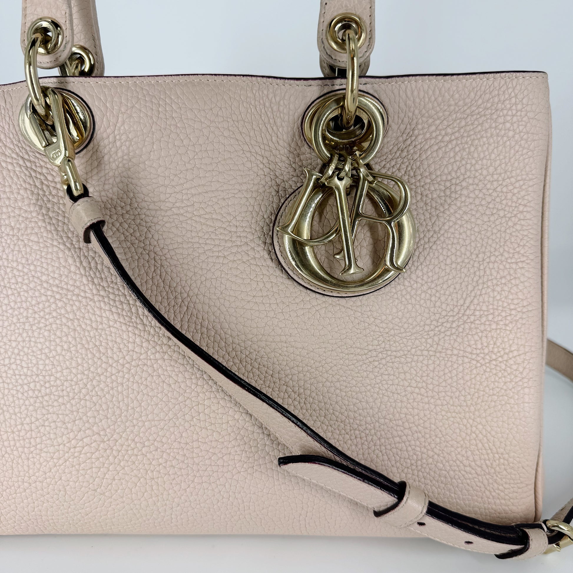 CHRISTIAN DIOR Diorissimo Poudre Pink Grained Leather Gold Hardware – Excellent Condition