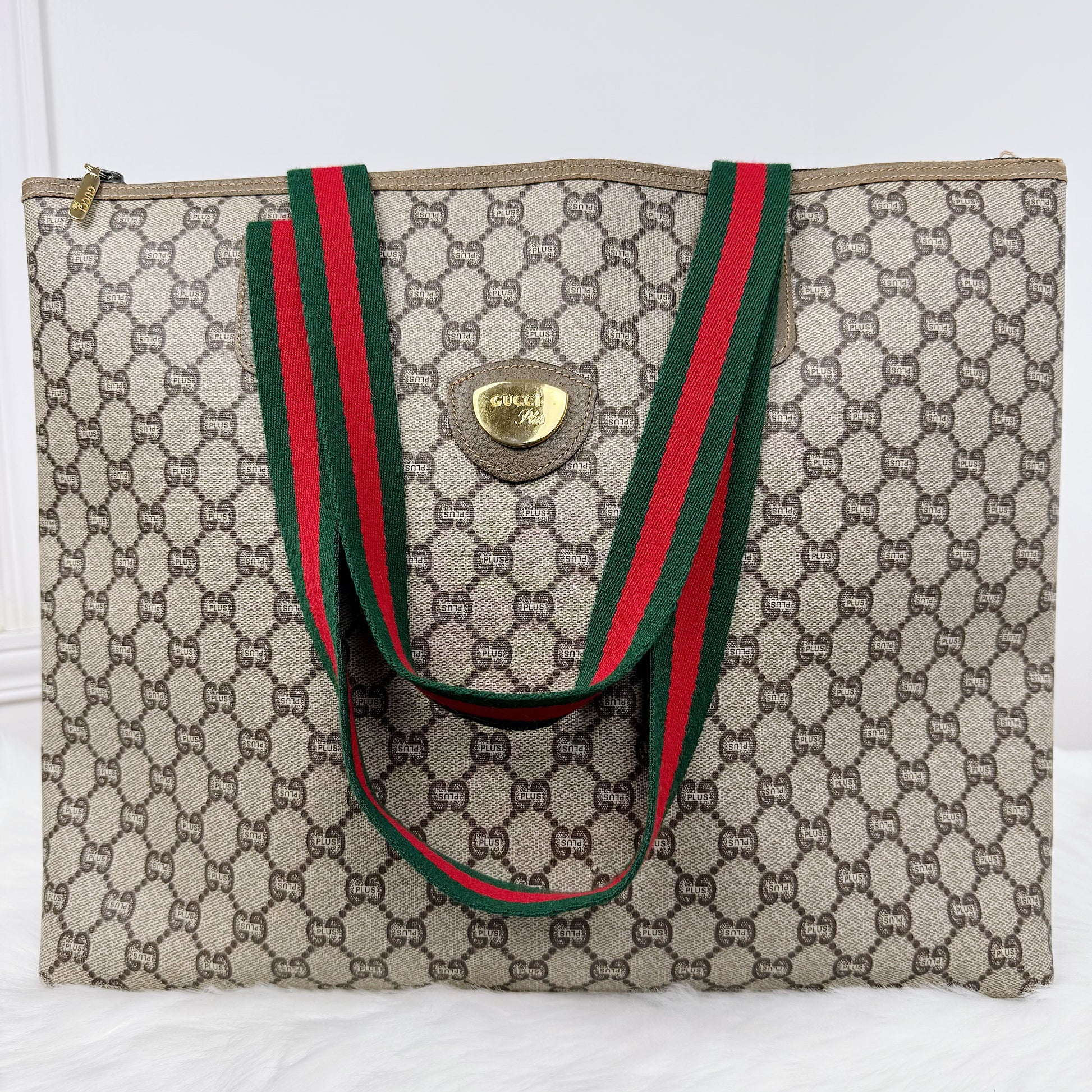 Gucci Plus GG Tote – Beige/Brown Canvas Vintage Very Good Condition