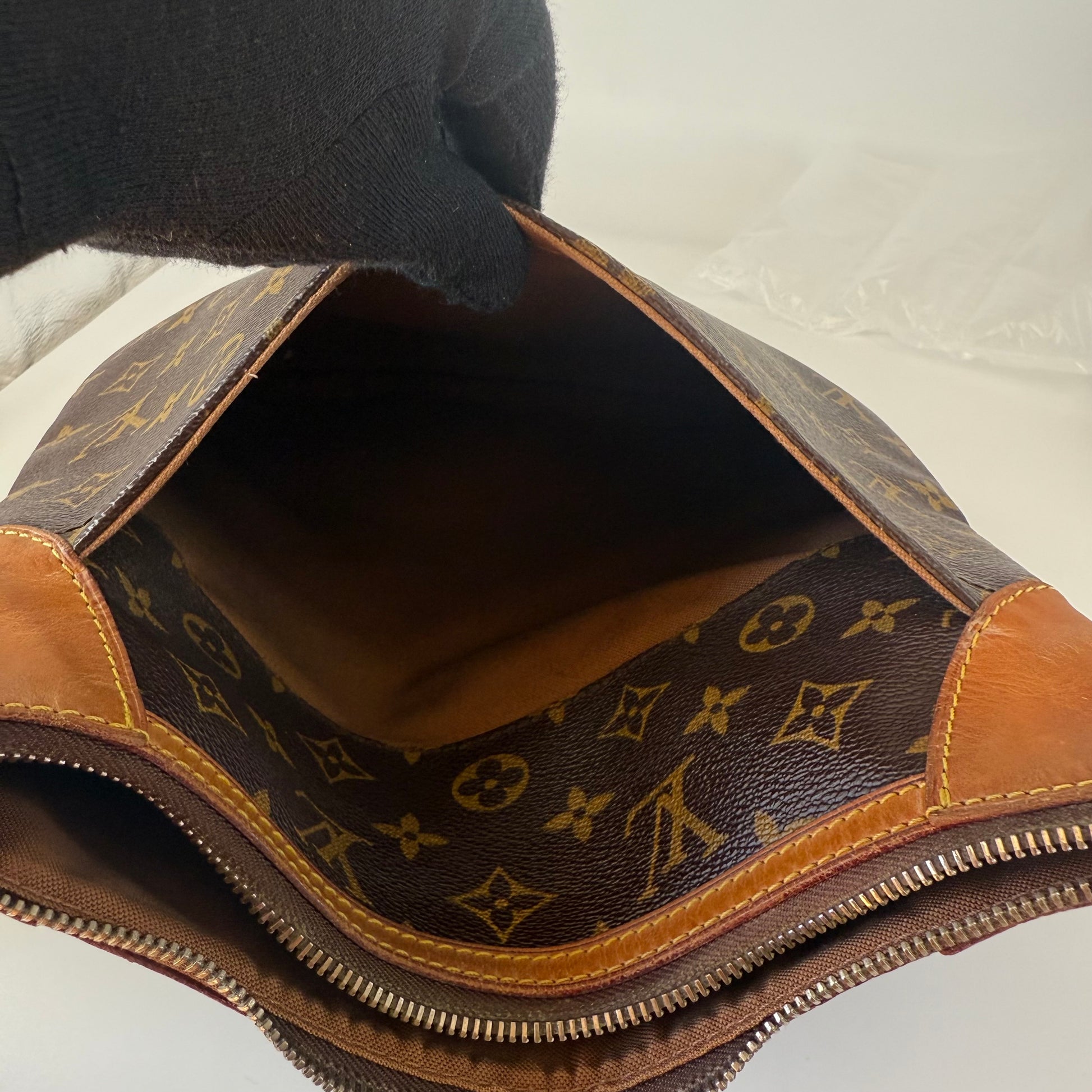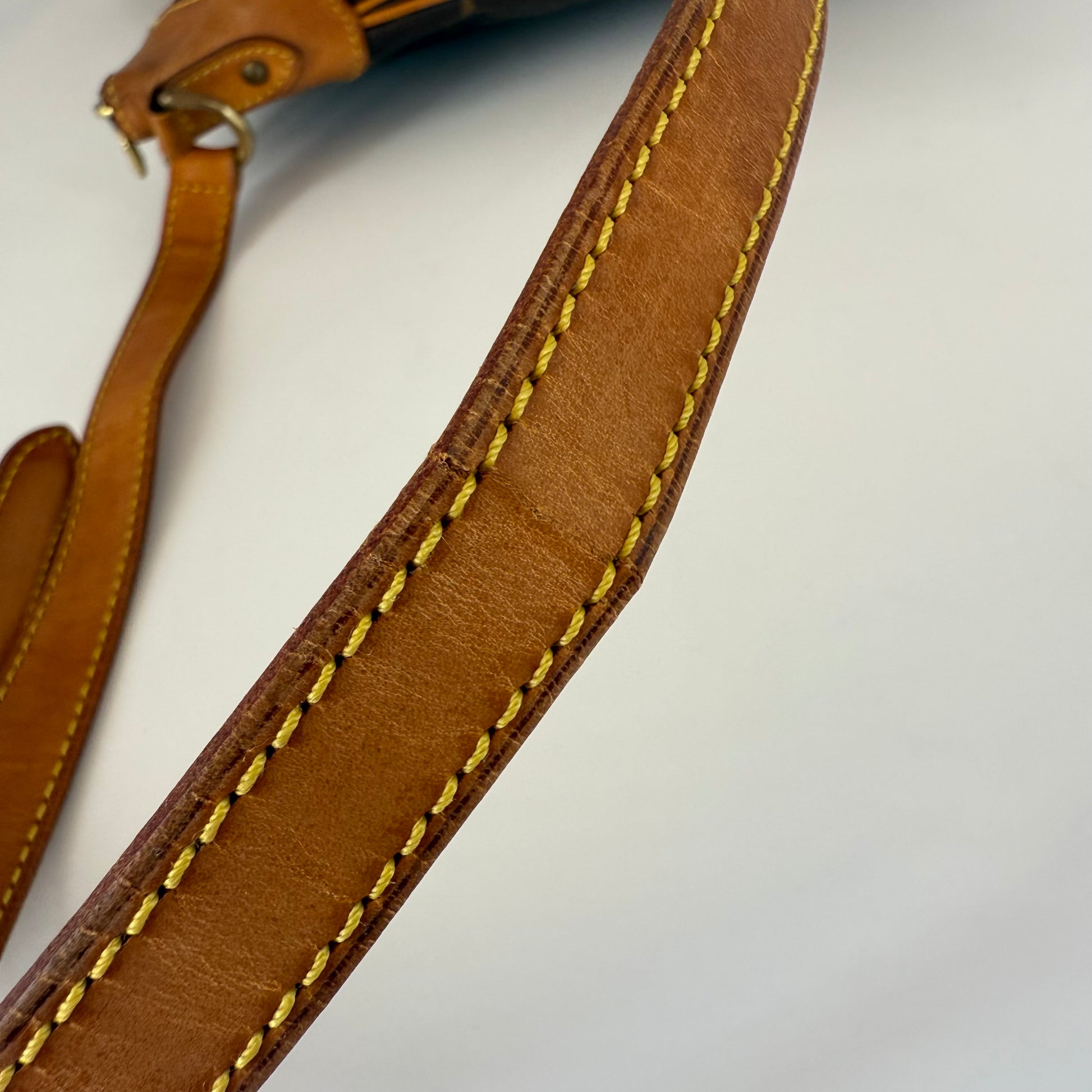 Exterior: Monogram canvas with no cracks, holes, or tears. The natural cowhide leather has developed a soft patina over time, adding character to the piece.