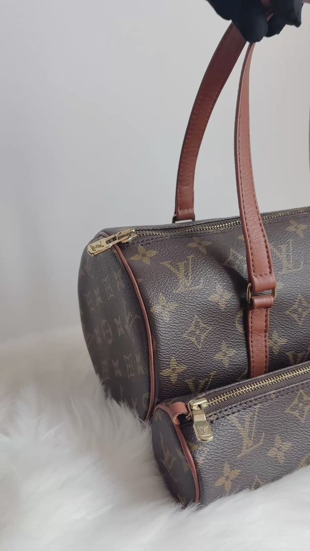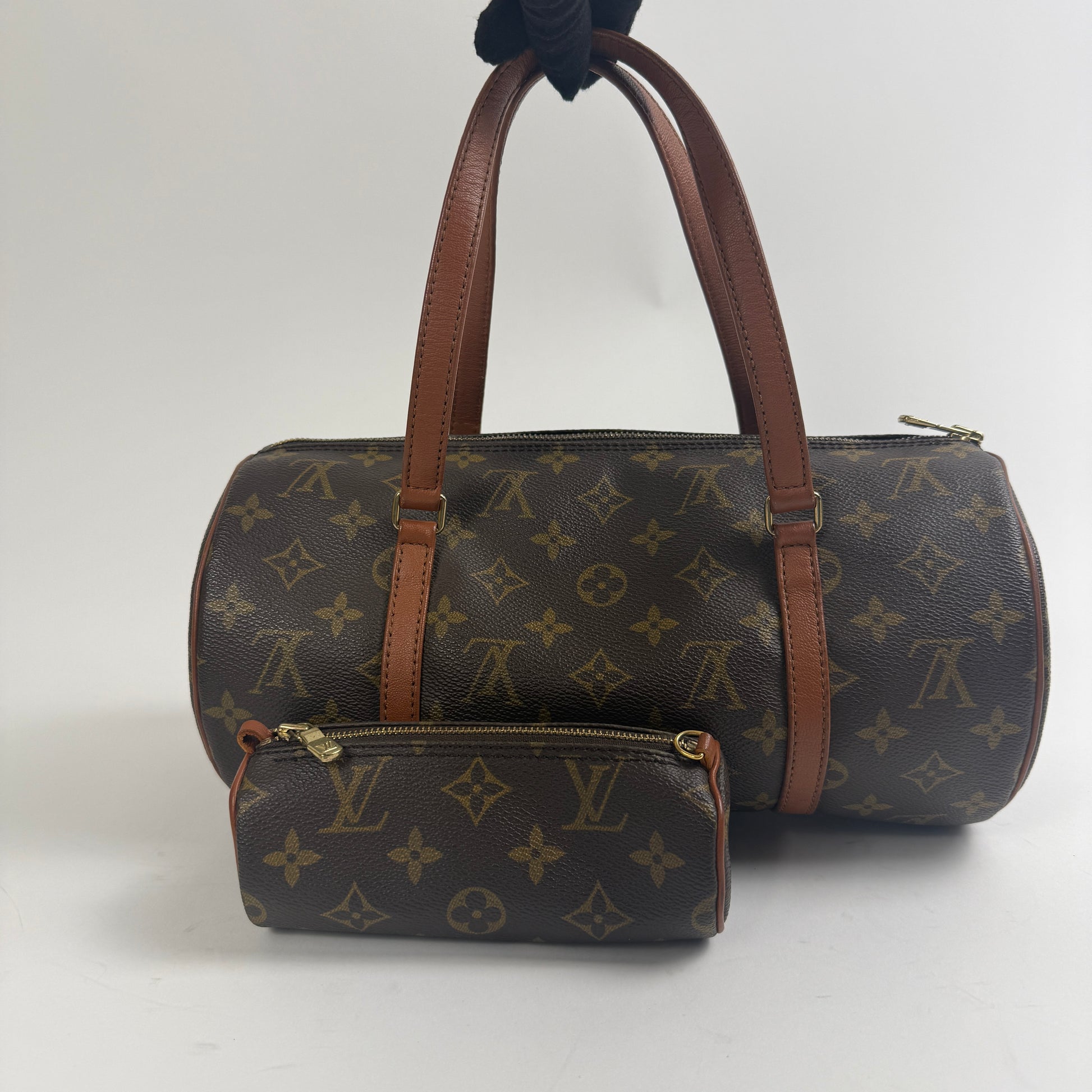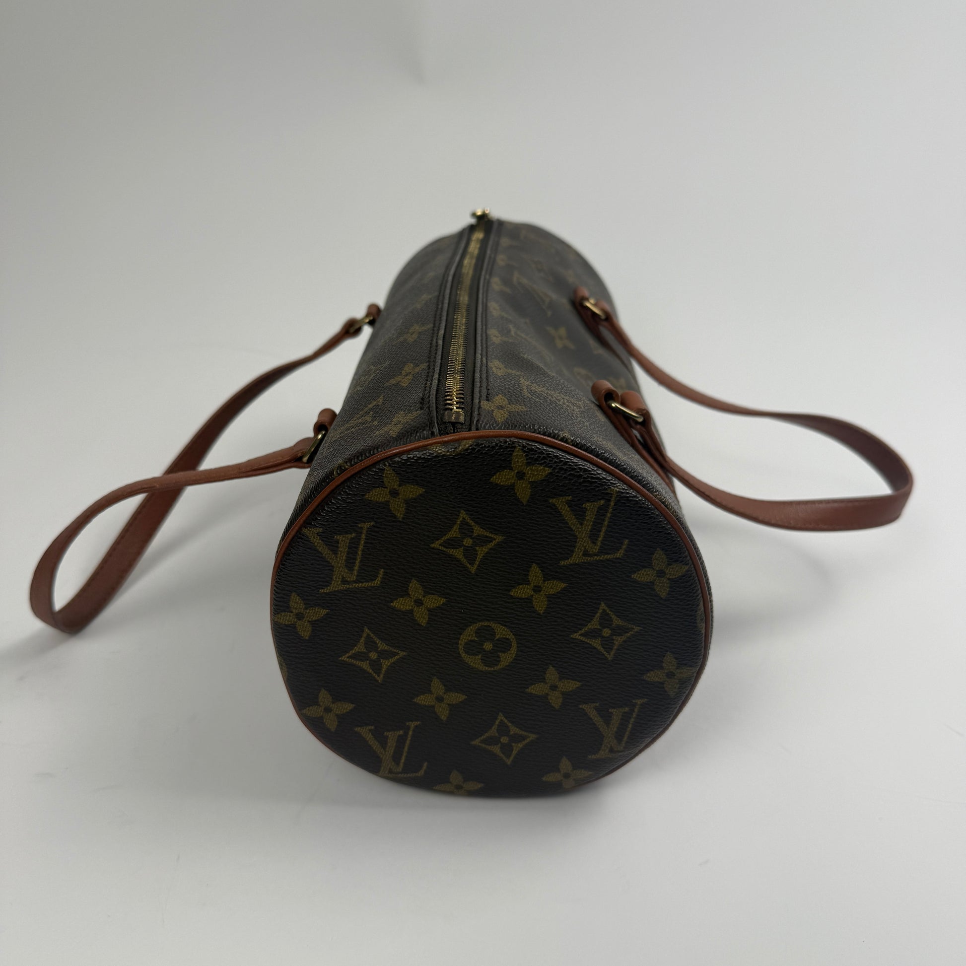 An iconic Louis Vuitton Papillon 30 crafted in the signature monogram canvas, featuring its distinctive cylindrical silhouette and timeless design. A classic vintage piece that combines practicality with effortless elegance.