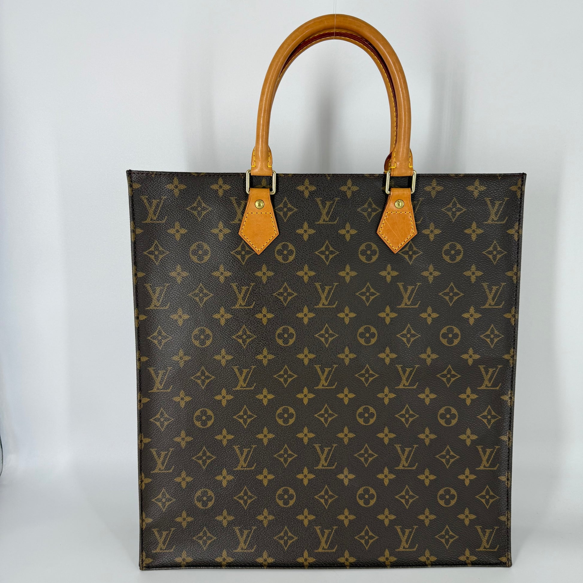 Condition: Very Good overall. The Exterior monogram canvas is in pristine, like-new condition, with no visible wear or flaws. The structure is sharp, and the vachetta leather handles feature a beautiful, even patina.