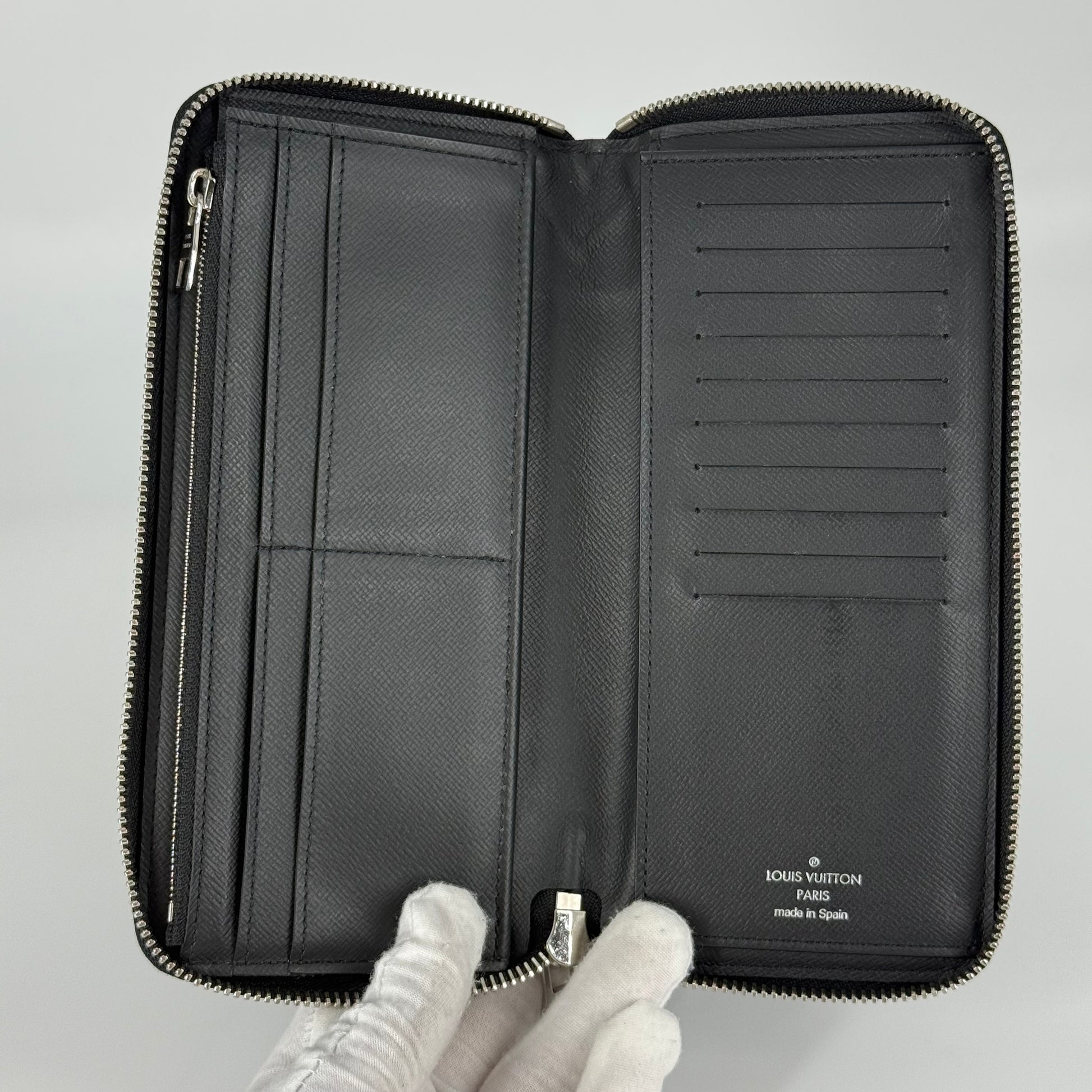 Interior: Very clean and in excellent condition. All card slots, bill compartments, and coin pocket are fully functional. No stains, no peeling, no odor.