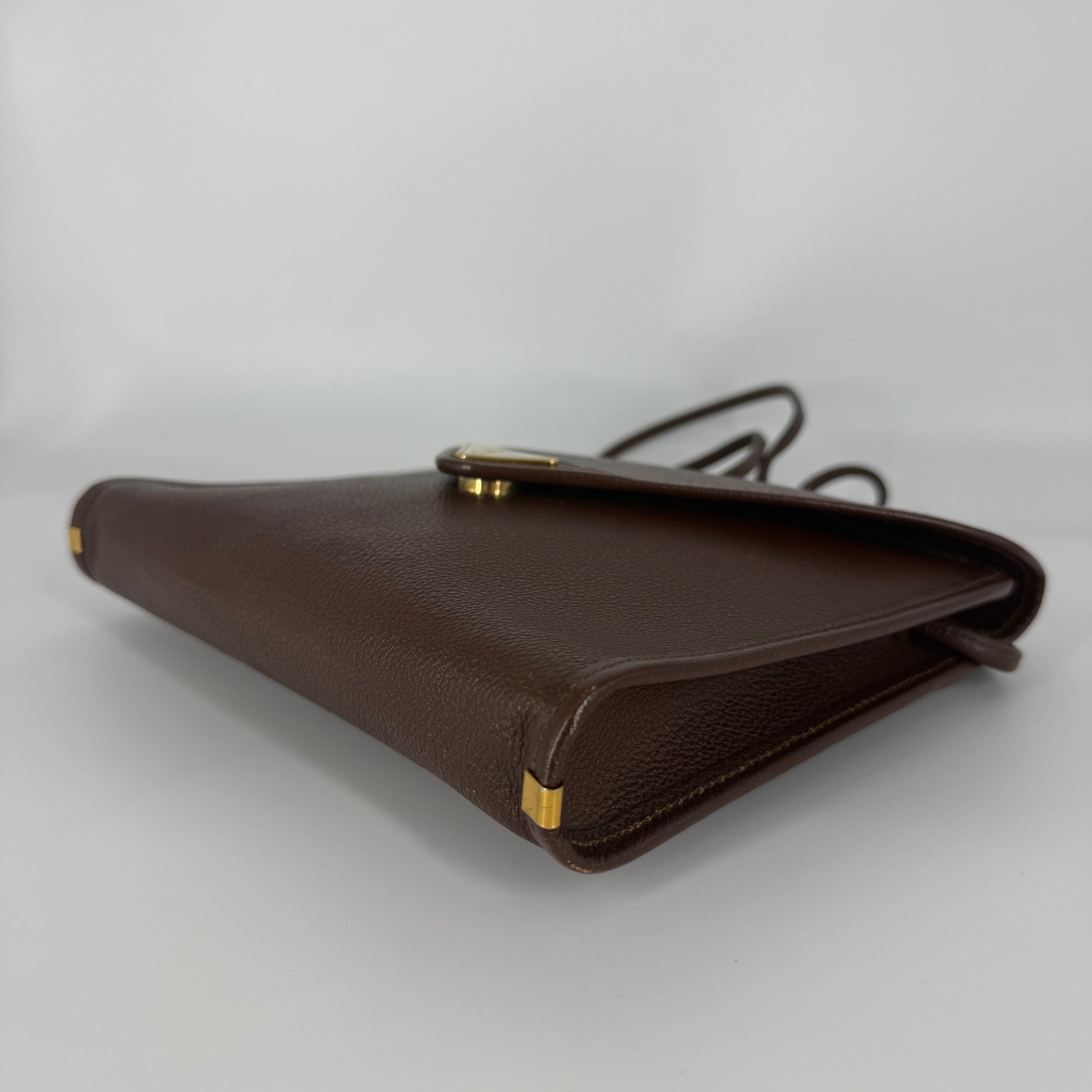 Exterior: Brown grained leather exterior in very good condition with minimal signs of wear. The structure is strong and elegant, the gold-tone YSL hardware remains shiny, the corners are clean with only light wear visible upon close inspection.